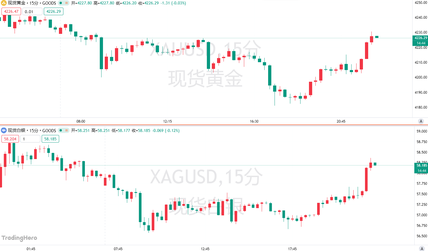週二亞歐盤,白銀在從歷史高點回落,關鍵技術指標顯示,爲期六天的反彈已將其推入超買區域;黃金在前一交易日觸及六週高位後也跌超1%。然但在美盤前,白銀收復日內全部失地,並衝上58美元上方,黃金也收復大部分失地。