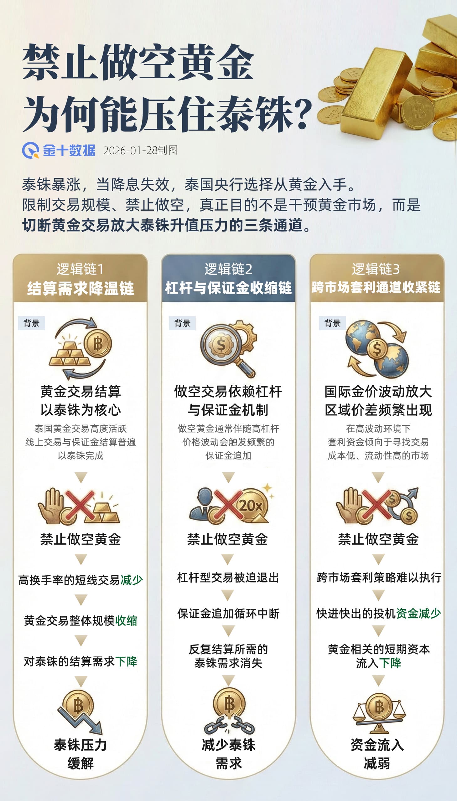 在這種結構下,做空黃金並不會削弱泰銖,反而可能強化升值壓力。原因在於,做空交易通常伴隨較高槓桿。價格一旦波動,投資者需要不斷追加保證金,而這些保證金同樣以泰銖計價。每一次追加,都會形成新的泰銖需求。