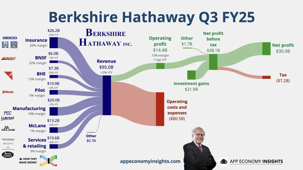 獲利增長的主要推動力來自於保險承保業務,由於本期巨災活動異常少,該公司的保險承保利潤翻了三倍多。其營運獲利大幅增長了 34%,達到 135 億美元(或 134.9 億美元),高於去年同期的 100.9 億美元。然而,在營運獲利的增長中,有超過五分之二的部分歸因於貨幣波動的影響。儘管保險承保利潤大幅提高,但旗下汽車保險公司 Geico 的承保稅前利潤下降了 13%。這一下降的原因是理賠增加以及承保成本激增 40%,主要是由於「與保單獲取相關的開支增加」,分析師認為這很可能大部分是廣告支出。另一方面,BNSF 鐵路業務表現較好,營運獲利成長了 6%(或 5%)達到 14 億美元,這得益於燃料成本降低、「員工生產力提升」,以及農產品和能源產品的運輸收入增長。然而,波克夏的公用事業部門,包括 PacifiCorp、MidAmerican 和 NV Energy,其營運獲利卻下降了 9%,降至 15 億美元,主要反映了野火事件的法律費用,以及天然氣管道和英國 Northern Powergrid 的成本增加。此外,Pilot 業務是本季度的「痛點」,該公司公佈了 1,700 萬美元的虧損,原因是批發燃料和零售利潤降低以及費用增加。沙納漢對此表示,Pilot 業務做得並不好,他有興趣看到公司將如何扭轉這種局面。