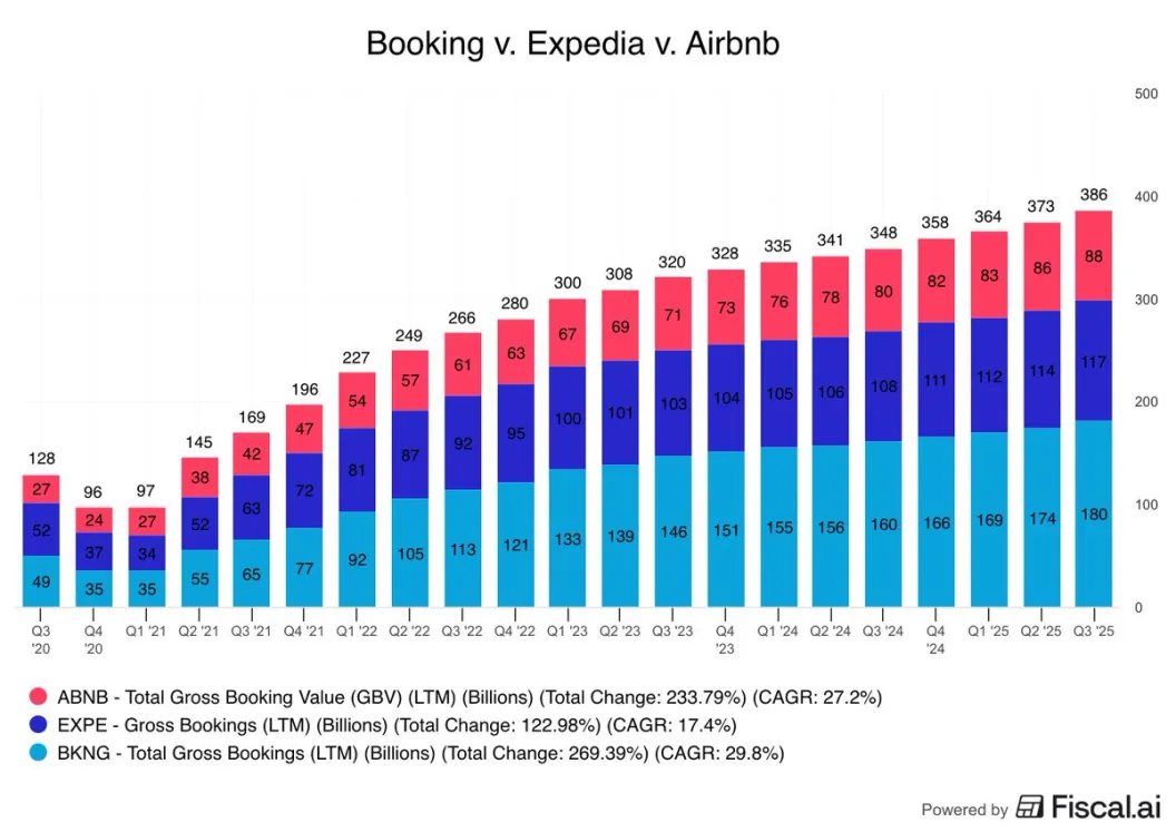 第三季度的亮眼表現主要得益於所有主要地區需求的韌性,尤其是美國出境旅遊的強勁。儘管如此,Booking 對於接下來的第四季度假期期間則保持了相對保守的態度,其預期的間夜數增長率(4%至6%)和營收增長預測(10%至12%)均略低於華爾街分析師的平均預期。